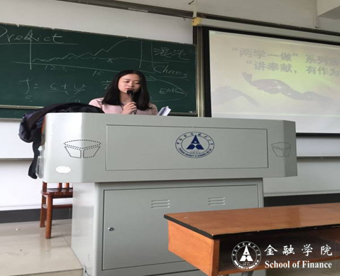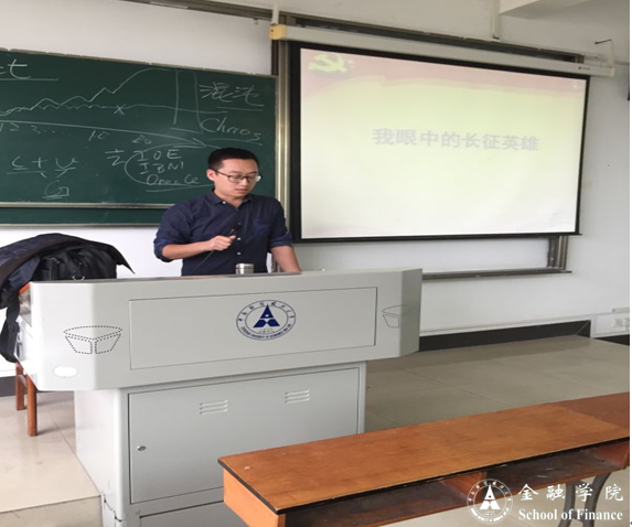 (学生记者 高申瑞)在纪念中国工农红军长征胜利80周年之际,10月14日,金融工程1501党支部在文添楼教室开展了“讲奉献、有作为”暨纪念长征胜利80周年主题学习会,带领支部全体党员学习长征精神,走好自己的“长征路”。活动由党支书唐瑞颖主持。