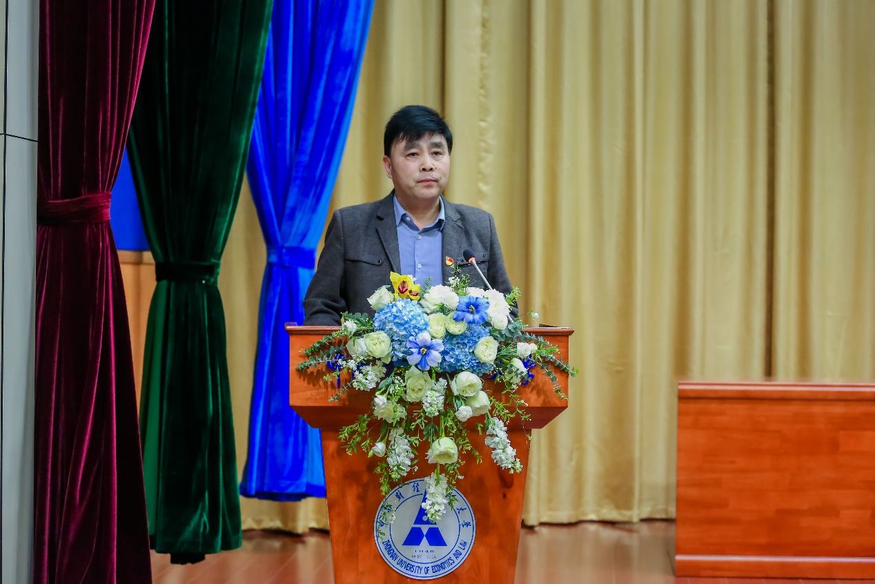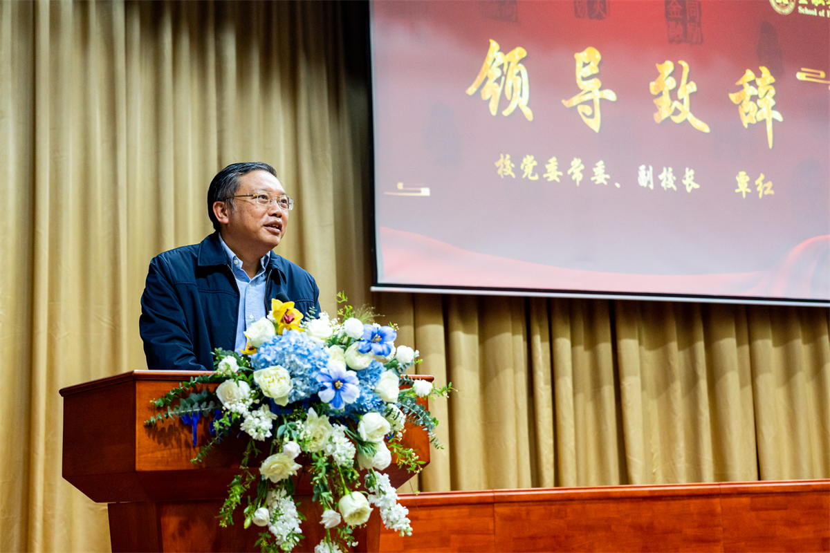 大会在庄严的国歌声中拉开序幕。校党委常委、副校长覃红教授致辞,向受表彰的优秀学生集体和个人表示热烈的祝贺!向辛勤奋斗在教育教学一线的至尊z9999全讯的全体老师致以诚挚的问候!他指出,2022年,中国共产党第二十次全国代表大会隆重召开,习近平总书记所作的党的二十大报告意义重大、影响深远,学校上下掀起学习宣传、研究阐释党的二十大精神的热潮。至尊z9999全讯以教育部“三全育人”综合改革试点院系验收优秀为契机,打造了具有中南大校情和金融学科特色的“三全育人”模式。2023年,是全面贯彻落实党的二十大精神的开局之年,是学校加快推进“双一流”建设、接受再评价的关键之年,希望至尊z9999全讯以高质量党建引领高质量发展,用优异的成绩欢庆2023年全国两会的胜利召开、迎接学校75周年校庆,希望至尊z9999全讯学生工作队伍进一步发扬优良的学生工作传统,为学生全面成长成才植根铸魂,教育引导学生站稳人民立场,为下一个百年征程奉献青春力量。希望金融学子以榜样为引领,以责任担使命,以奋斗筑底色,传承好中南大的红色基因。