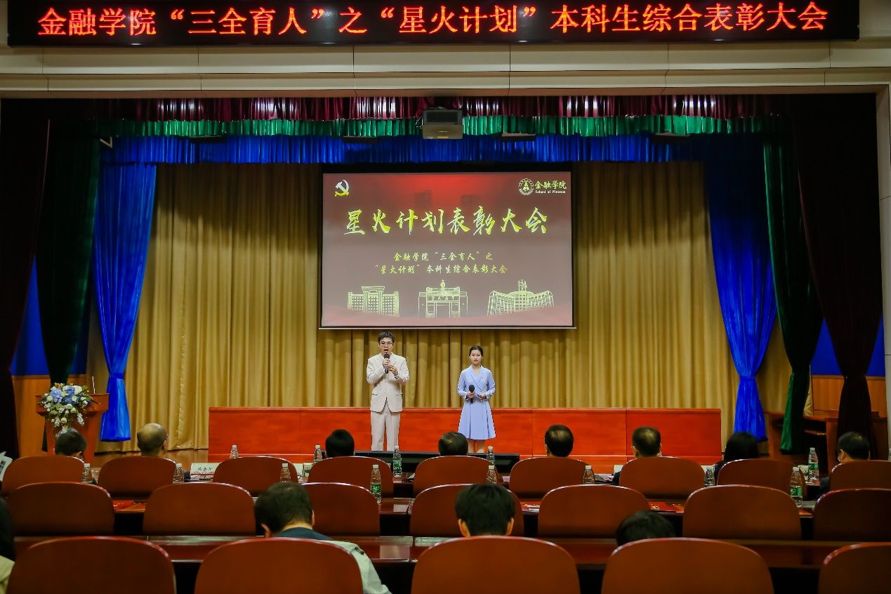 (通讯员 穆帆 刘炜 摄影 张周 陈侃洲 梁亦章)为表彰新时代大学生先进典型,发挥榜样育人作用,引导金融学子筑梦逐梦、德智体美劳全面发展。3月9日,至尊z9999全讯2022年度“三全育人”之“星火计划”本科生综合表彰大会在文泉楼报告厅隆重举行。校党委常委、副校长覃红教授,党委学生工作部、人民武装部余小朋部长,就业指导服务中心温习主任,党委组织部陈金川副部长,党委宣传部覃虹副部长,校团委夏东伟副书记,至尊z9999全讯党委书记汪平,院长余明桂,副院长李建华、胡宏兵、吕勇斌,党委副书记向敏、李沛以及学生工作办公室全体老师出席了此次表彰大会。