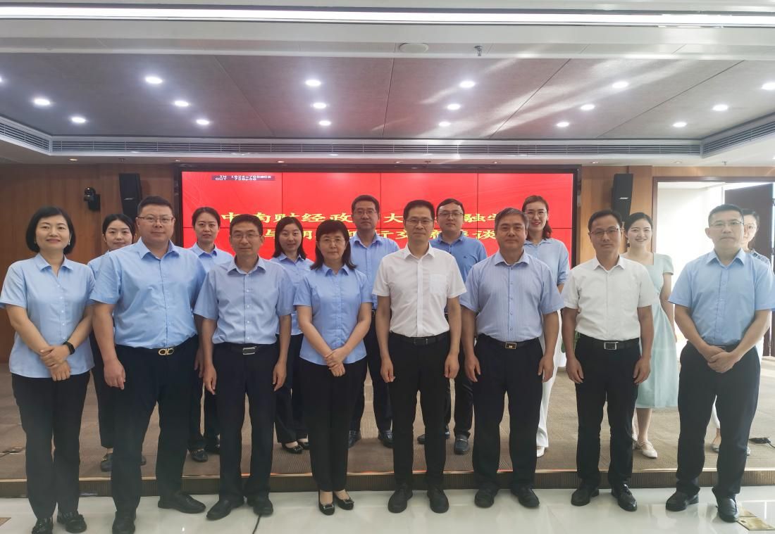 随后湖北银行公司金融部总经理郑荣来、人力资源部总经理平祥仁、董事会办公室主任杨世坤、交易银行部负责人李艳萍、公司金融部总经理助理范志华和韩亚文等详细介绍了湖北银行的发展现状、人才需求以及特色优势。交流环节中,双方针对创新型金融人才培养、优质人才引进、实践基地建设等进行了深入沟通与探讨。